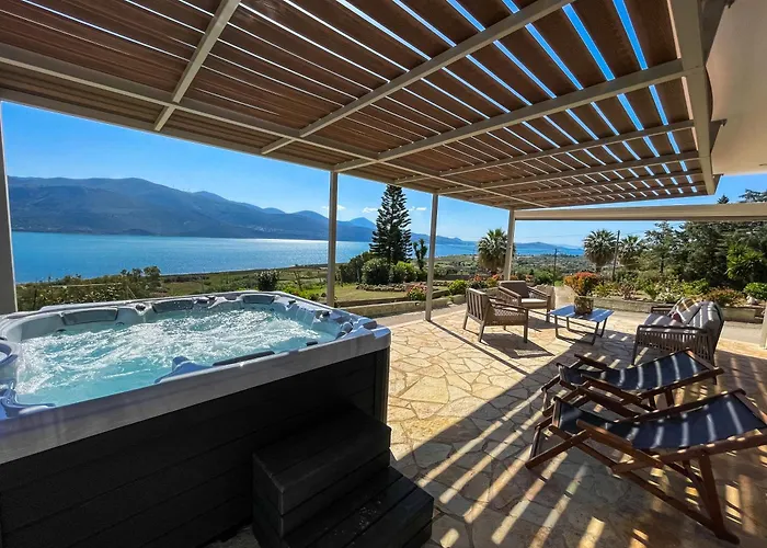 Die Otium Residence verfügt über eine Terrasse mit Blick aufs Meer und ist 42 Autominuten vom Flughafen Kefalonia entfernt gelegen. Diese Villa bietet seinen Gästen ein entspannendes Erlebnis mit einem Jacuzzi.
